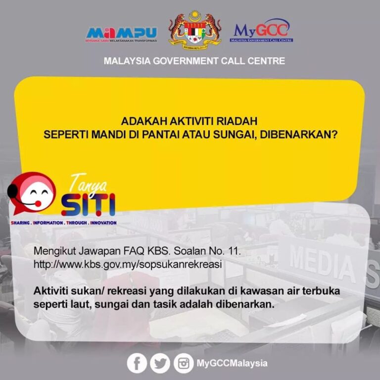 Mengikut Jawapan FAQ KBS. Soalan No. 11. Aktiviti sukan/ rekreasi yang dilakukan di kawasan air terbukaseperti laut, sungai dan tasik adalah dibenarkan. Rujuk http://www.kbs.gov.my/sopsukanrekreasi Sumber : MyGCC