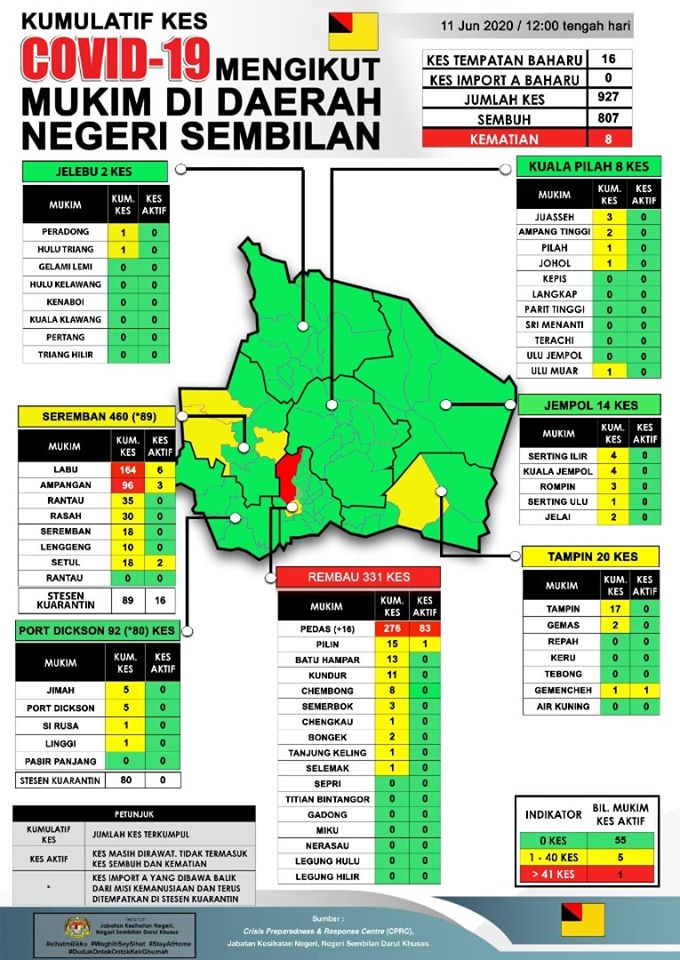 Sehingga 12 Jun 2020, jam 12.00 tengah hari, terdapat EMPAT (4) KES BARU positif COVID-19 dilaporkan ke Crisis Preparedness and Response Centre (CPRC) Jabatan Kesihatan Negeri, Negeri Sembilan, menjadikan jumlah keseluruhan kes COVID-19 sebanyak 931 kes. Daripada jumlah tersebut, sebanyak […]