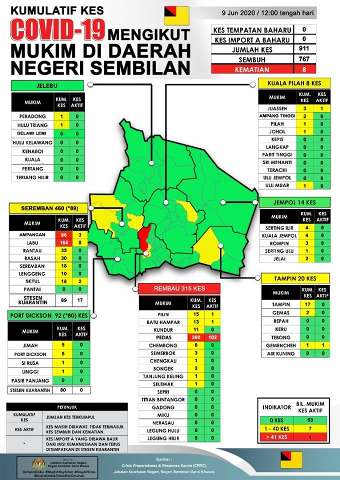 Sehingga 10 Jun 2020, jam 12.00 tengah hari, TIADA KES BARU positif COVID-19 dilaporkan ke Crisis Preparedness and Response Centre (CPRC) Jabatan Kesihatan Negeri, Negeri Sembilan, menjadikan jumlah keseluruhan kes COVID-19 kekal sebanyak 911 kes. Daripada jumlah tersebut, sebanyak 259 […]