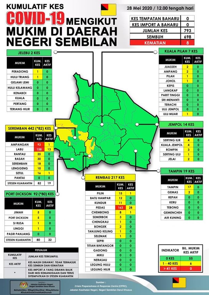 Sehingga 28 Mei 2020, jam 12.00 tengah hari, TIADA KES BARU positif COVID-19 dilaporkan ke Crisis Preparedness and Response Centre (CPRC) Jabatan Kesihatan Negeri, Negeri Sembilan, menjadikan jumlah keseluruhan kes COVID-19 kekal sebanyak 793 kes. Daripada jumlah tersebut, sebanyak 162 […]