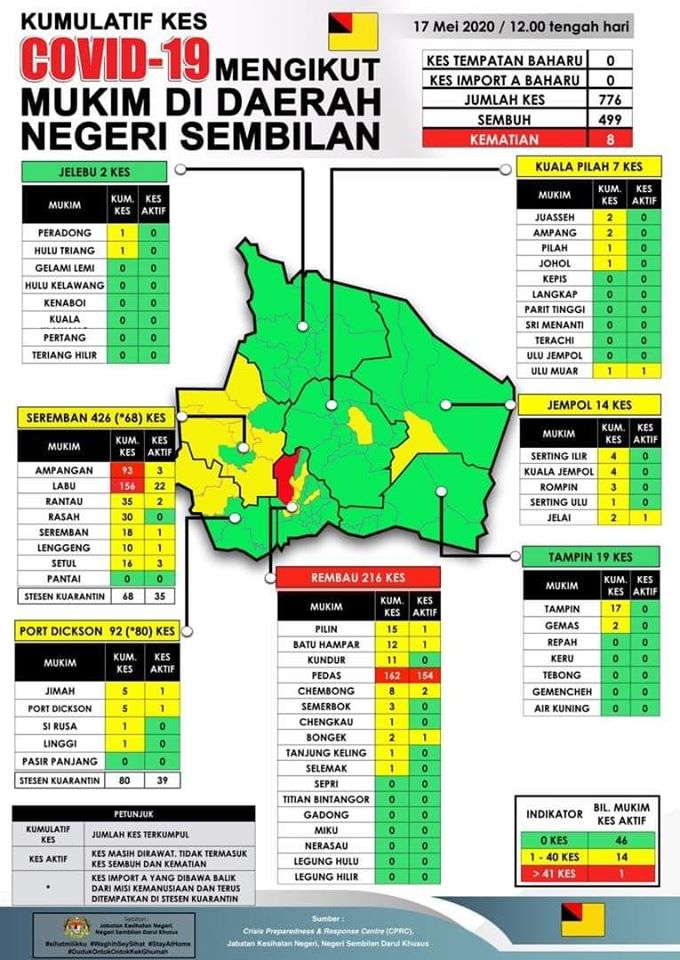 Sehingga 17 Mei 2020 jam 12.00 tengah hari, TIADA KES BARU positif COVID-19 dilaporkan ke Crisis Preparedness and Response Centre (CPRC) Jabatan Kesihatan Negeri, Negeri Sembilan, menjadikan jumlah keseluruhan kes COVID-19 kekal sebanyak 776 KES. Daripada jumlah keseluruhan, sebanyak 161 […]