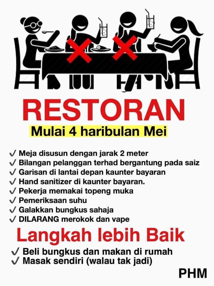 [Infografik] : #COVIDー19 : Langkah operasi pembukaan semula restoran. #COVID19#StayAtHome#KitaJagaKita