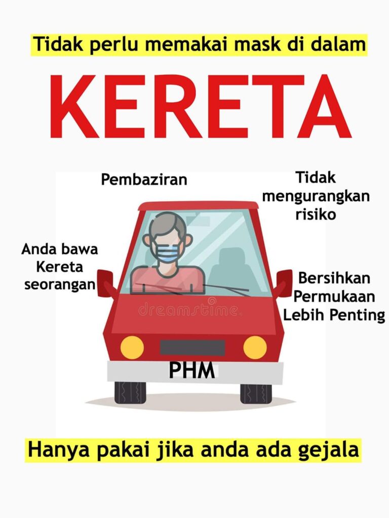 Pemakaian mask tanpa ada gejala di dalam kereta sepanjang PKP COVID-19 adalah tidak tepat malah satu pembaziran. Simpan mask tersebut dan gunakan bila perlu. Sumber : Public Health Malaysia