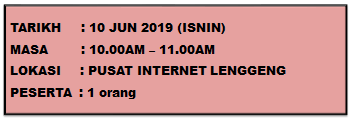 Tujuan Mendaftar masuk permohonan bagi pinjaman pelajaran di portal PTPTN. Aktiviti 1. Peserta membuka url https://www.ptptn.gov.my/ untuk membuat permohonan bagi pinjaman pendidikan. 2. Petugas menunjukkan cara bagi mengisi borang permohonan pinjaman dan diikuti oleh peserta. 3. Peserta mengisi data yang diperlukan sambil […]
