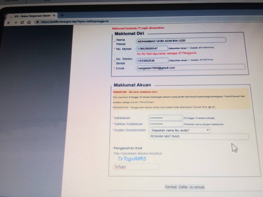 E-KERAJAAN : MENGEMASKINI MAKLUMAT PENDAFTARAN TAHUN 1 DI https://public.moe.gov.my/