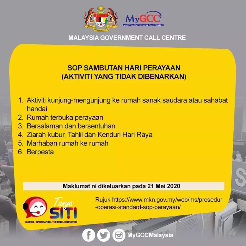 1. Aktiviti kunjung-mengunjung ke rumah sanak saudara atau sahabat handai2. Rumah terbuka perayaan3. Bersalaman dan bersentuhan4. Ziarah kubur, Tahlil dan Kenduri Hari Raya5. Marhaban rumah ke rumah6. Berpesta Rujuk https://www.mkn.gov.my/web/ms/prosedur-operasi-standard-sop-perayaan/ Sumber : MyGCC […]